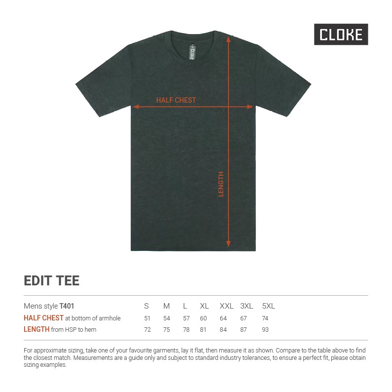 A t-shirt so full of Cloke Comfort they often get 'borrowed' by significant others. Heavyweight, 100% combed ring-spun cotton*, 220gsm, pre-shrunk, anti-pill. Tight knit for superior printability and handfeel. Side seams for better fit. * Marle colours have a polyester or viscose content to produce the marle look.